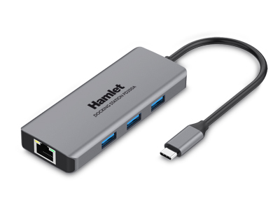 La Docking Station PD200A di Hamlet consente di ampliare l'area di lavoro dello schermo e la connettività del notebook utilizzando un solo cavo USB Type-C. L'uscita video HDMI con supporto 4K Ultra HD permette di collegare un monitor esterno per duplicare o estendere il desktop del computer su uno schermo più grande. Le tre porte USB 3.0 offrono connettività per dispositivi esterni come tastiere, mouse ed hard disk e supportano la ricarica di dispositivi come smartphone e tablet. Completa la connettività della docking station l'uscita audio da 3,5 mm e la porta di rete Gigabit per il collegamento alla rete LAN e Internet.
