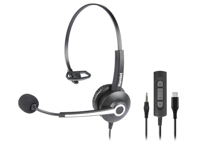 Hamlet Renova Headset modello CJM è una cuffia monoaurale per uso professionale con microfono regolabile che consente la comunicazione a mani libere progettata per un uso prolungato. La doppia modalità di connessione sia con jack audio da 3,5 mm che connettore USB-C permette l'utilizzo con Computer, Notebook, Smartphone e Tablet. È la soluzione ideale per videoconferenze e chiamate vocali via internet tramite applicazioni come Skype™, Zoom, NetMeeting. Renova Headset CJM ha un design leggero e confortevole grazie all'archetto regolabile e al morbido auricolare on ear in similpelle imbottito intercambiabile. Il microfono omnidirezionale, dotato di riduzione dei rumori di fondo, offre una buona qualità della voce e può essere ruotato di 270 gradi per l'utilizzo a sinistra o a destra. Sul cavo è presente il telecomando con il controllo del volume e funzione Mute. L'installazione è completamente Plug-and-Play, è sufficiente collegare il cavo al computer senza la necessità di installare software aggiuntivo.