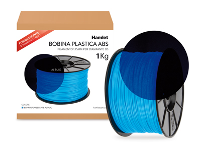 Bobina di filamento ABS Blu Fosforescente al buio da 1Kg