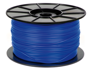 Bobina di filamento ABS blu, materiale particolarmente adatto alla realizzazione di oggetti tridimensionali con la stampante 3D Hamlet 3DX100.