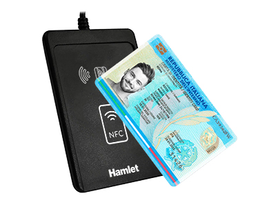 Hamlet HUSCR-CIEP è un lettore di Smart Card contactless NFC che in combinazione con la Carta di Identità Elettronica o la TS-CNS consente di accedere in modo sicuro ai portali della Pubblica Amministrazione, come ad esempio l'INPS, l'Agenzia delle Entrate e il Fascicolo Sanitario Elettronico (FSE), per visualizzare e gestire i propri dati fiscali, ottenere certificati e documenti oppure consultare referti medici, prescrizioni ed eseguire prenotazioni per visite ed esami senza doversi recare fisicamente presso gli uffici. Il lettore in abbinamento alla carta di identità elettronica CIE può consentire l'accesso a tutti i portali ove è indicato "ENTRA CON CIE" in sostituzione della modalità di accesso con SPID.