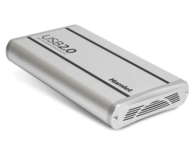 Hamlet IDE+SATA Desk Station è un box esterno disegnato per contenere Hard Disk SATA e IDE da 3,5" di qualsiasi capacità. L'interfaccia USB 2.0 ad alta velocità permette di raggiungere una velocità di trasferimento dati fino a 480Mbps. L'installazione è semplice e veloce mentre la solida struttura in alluminio permette una eccellente dissipazione del calore.