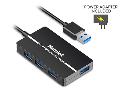 Hamlet XHUB-04U3P è un Hub esterno che aggiunge quattro porte USB 3.0 al vostro computer. Supporta fino a 4 periferiche USB ed è compatibile con il nuovo standard SuperSpeed USB 3.0 che offre una velocità di trasferimento dati fino a 5.0 Gbps, 10 volte più veloce di USB 2.0. Il prodotto è fornito con alimentatore esterno 5V 2A.