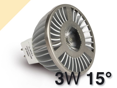 Faretto a LED MR16 da 12V con attacco standard GU 5.3 ideale per illuminare ambienti domestici, uffici, barche e caravan. La nuova tecnologia a LED applicata a questa categoria di faretti consente di poter tenere maggiormente sotto controllo la temperatura dei controsoffitti e lampadari ed evitare le tipiche colorazioni scure dovute al calore emesso dalle classiche lampade alogene. La durata è di almeno 25.000 ore, quindi 12-15 volte superiore alle comuni MR16. La tonalità di luce emessa è di 3000 gradi Kelvin del tutto simile a quella di una comune lampadina ad incandescenza. Nota molto importante è l'erogazione della luce che avviene con una apertura di 15 gradi, quindi ideale per installazione su punti luce ove si esige concentrazione di luminosità.