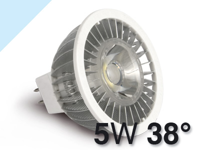 Faretto a LED MR16 da 12V con attacco standard GU 5.3 ideale per illuminare ambienti domestici, uffici, barche e caravan. La nuova tecnologia a LED applicata a questa categoria di faretti consente di poter tenere maggiormente sotto controllo la temperatura dei controsoffitti e lampadari ed evitare le tipiche colorazioni scure dovute al calore emesso dalle classiche lampade alogene. La durata è di almeno 25.000 ore, quindi 12-15 volte superiore alle comuni MR16. La tonalità di luce emessa è di 6000 gradi Kelvin quindi estremamente bianca e "fredda". Nota molto importante è l'erogazione della luce che avviene con una apertura di 38 gradi, quindi ideale per installazione su punti luce ove si esige luminosità diffusa e poco concentrata.