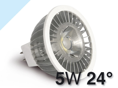 Faretto a LED MR16 da 12V con attacco standard GU 5.3 ideale per illuminare ambienti domestici, uffici, barche e caravan. La nuova tecnologia a LED applicata a questa categoria di faretti consente di poter tenere maggiormente sotto controllo la temperatura dei controsoffitti e lampadari ed evitare le tipiche colorazioni scure dovute al calore emesso dalle classiche lampade alogene. La durata è di almeno 25.000 ore, quindi 12-15 volte superiore alle comuni MR16. La tonalità di luce emessa è di 6000 gradi Kelvin quindi estremamente bianca e "fredda". Nota molto importante è l'erogazione della luce che avviene con una apertura di 24 gradi, quindi ideale per installazione su punti luce ove si esige concentrazione di luminosità.