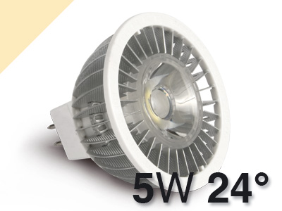 Faretto a LED MR16 da 12V con attacco standard GU 5.3 ideale per illuminare ambienti domestici, uffici, barche e caravan. La nuova tecnologia a LED applicata a questa categoria di faretti consente di poter tenere maggiormente sotto controllo la temperatura dei controsoffitti e lampadari ed evitare le tipiche colorazioni scure dovute al calore emesso dalle classiche lampade alogene. La durata è di almeno 25.000 ore, quindi 12-15 volte superiore alle comuni MR16. La tonalità di luce emessa è di 3000 gradi Kelvin del tutto simile a quella di una comune lampadina ad incandescenza. Nota molto importante è l'erogazione della luce che avviene con una apertura di 24 gradi, quindi ideale per installazione su punti luce ove si esige concentrazione di luminosità.