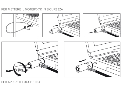 Cavo di Sicurezza 200 cm con Chiave per Notebook Slim - Lucchetto diametro 10 mm Low Profile