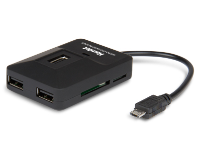 Hamlet OTG Card Reader riunisce in un solo dispositivo un lettore di memorie e un hub USB che, grazie alla tecnologia On-The-Go, consente di trasferire file da memory card e pen drive direttamente su Smartphone o Tablet dotati di porta micro USB. L'hub USB integrato permette inoltre di collegare ai propri dispositivi mobili periferiche esterne come mouse e tastiere.