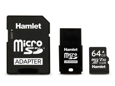 La scheda Micro SD di Hamlet è la soluzione ideale per espandere la memoria del vostro smartphone, tablet, action cam, drone e di qualsiasi dispositivo dotato di un alloggiamento per schede microSD. La velocità di lettura/scrittura di questa scheda permette di registrare video 4K Ultra HD. La scheda Micro SD è inoltre fornita di un adattatore SD per condividere i file su dispositivi compatibili SD e di un adattatore USB che permette di trasferire velocemente i file su qualsiasi computer o altro dispositivo compatibile dotato di porta USB.