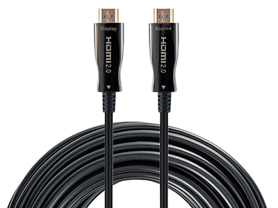 Il cavo ottico attivo (AOC) HDMI utilizza la tecnologia a fibra ottica per trasportare il segnale HDMI digitale. La tecnologia a fibra ottica permette di trasportare il segnale molto più lontano rispetto a un cavo tradizionale in rame (fino a 100 m) e riduce il rischio di interferenze EMI/RFI. I cavi HDMI AOC hanno anche cavi di alimentazione in rame dedicati all'interno, quindi non è richiesta alimentazione esterna. Il cavo ha una lunghezza di 50 metri e supporta risoluzioni fino a 4K.
